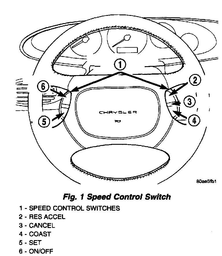 The electronic control is integrated into the Powertrain Control Module which is located in the engine compartment. The controls are located on the steering wheel and consist of five switches.