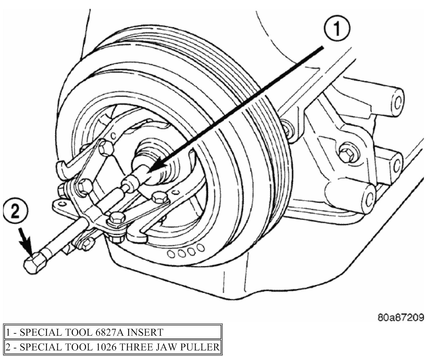 8. Remove crankshaft damper bolt. Remove crankshaft damper.