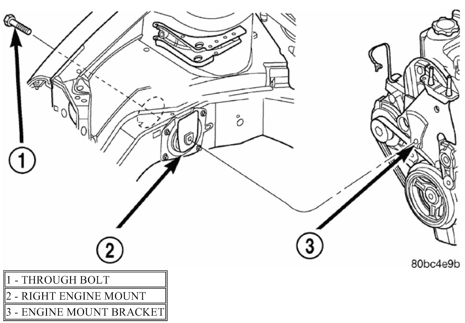 9. Install right engine mount to engine mount bracket through bolt. Tighten bolt to 118 N-m (87 ft. lbs.).