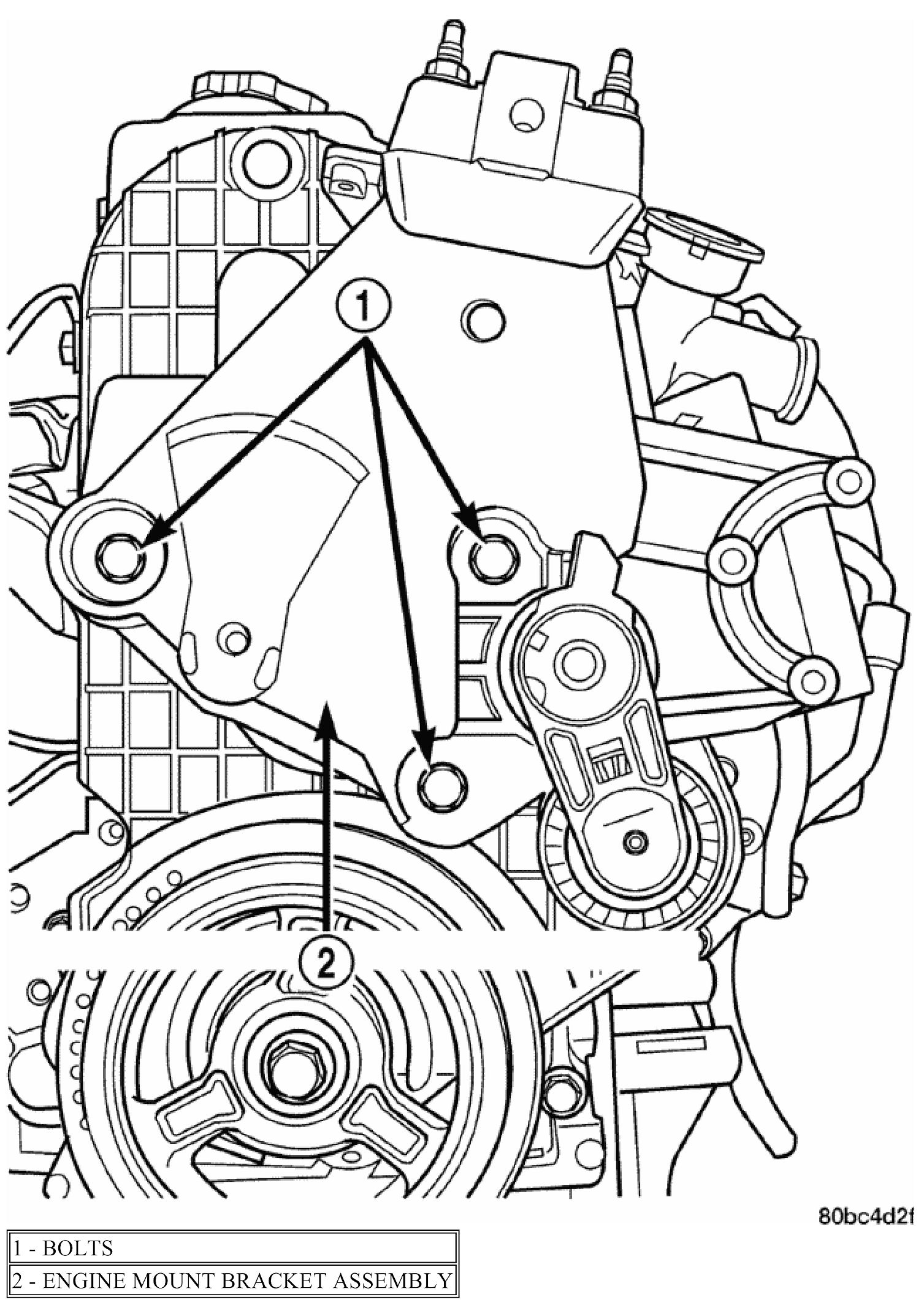 2. Position engine mount bracket to its mounting location. Hand start the upper two bolts of the engine mount bracket.