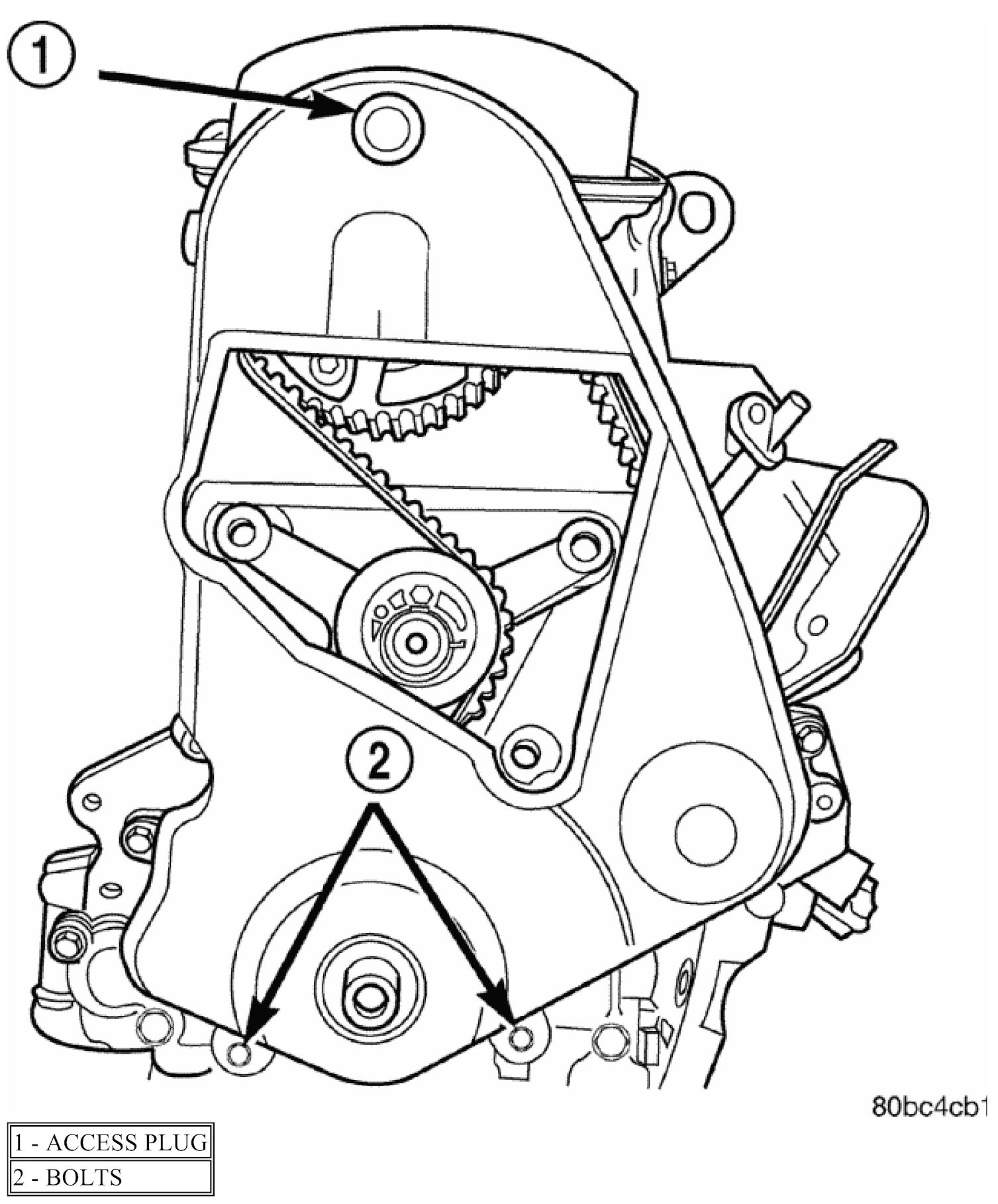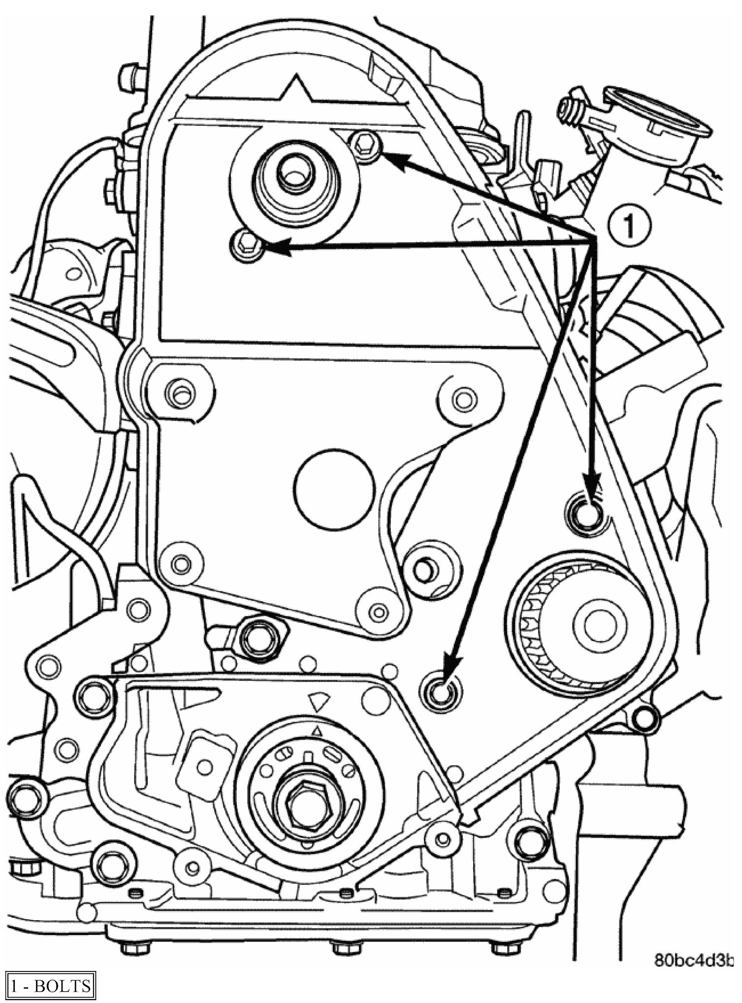 17. Remove the front timing belt cover fasteners. Remove front timing belt cover.