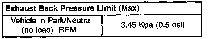 7. If pressure exceeds maximum limits, inspect exhaust system for restricted component. Replace component(s) as necessary.
