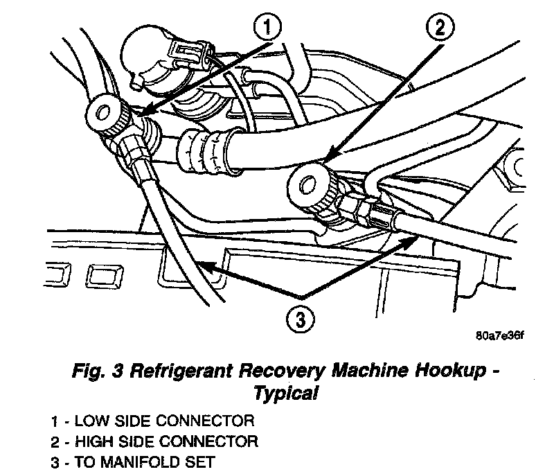 1. Connect a suitable charging station, refrigerant recovery machine or a manifold gauge set with vacuum pump and refrigerant recovery equipment.