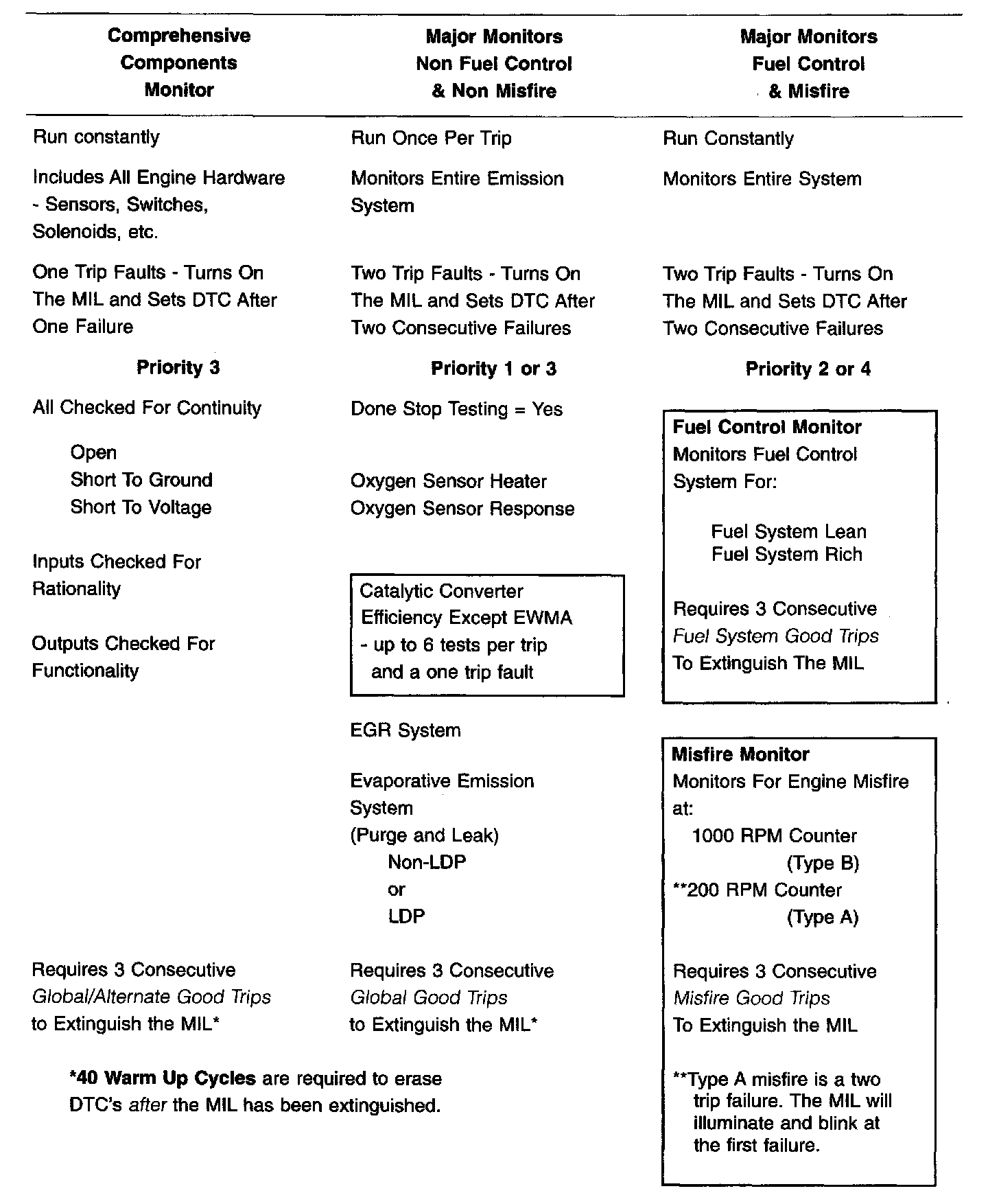 The PCM has been programmed to monitor many different circuits of the fuel injection system. This monitoring is called on-board diagnosis.