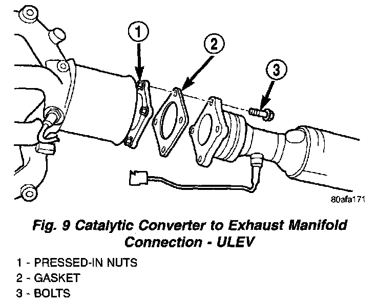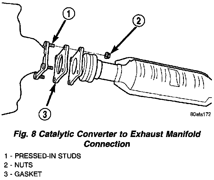4. Remove catalytic converter to exhaust manifold attaching fasteners and remove converter from vehicle.