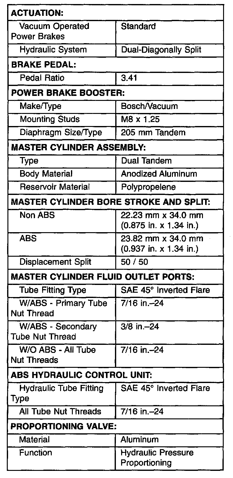 Brake Actuating System Specifications