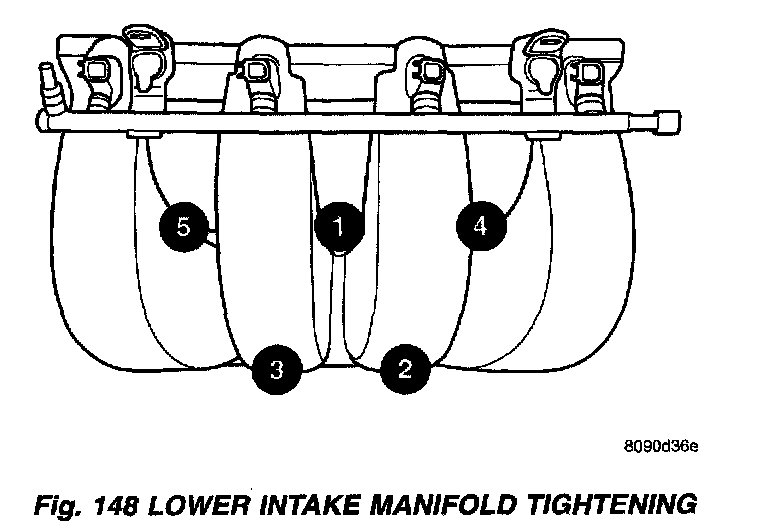 Tighten lower intake manifold bolts in sequence shown. Torque to