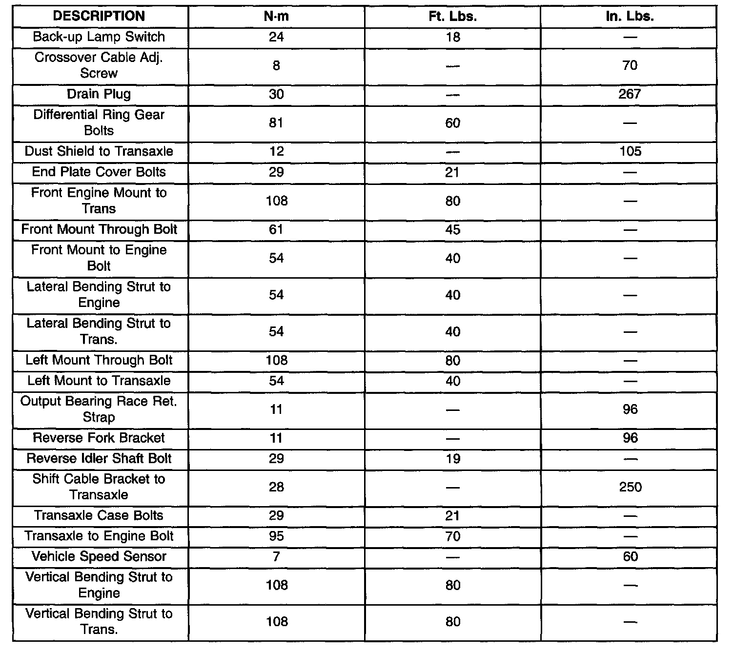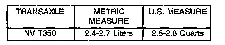 MANUAL TRANSAXLE FLUID FILL SPECIFICATIONS