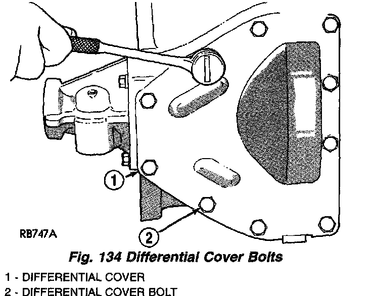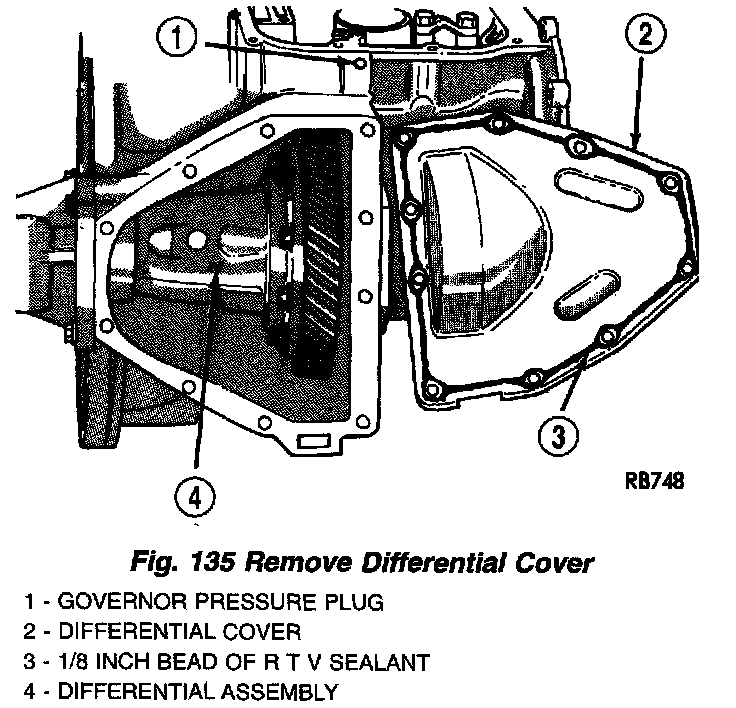 5. Remove differential cover (Fig. 135). Clean surfaces of old adhesive prior to reassembly