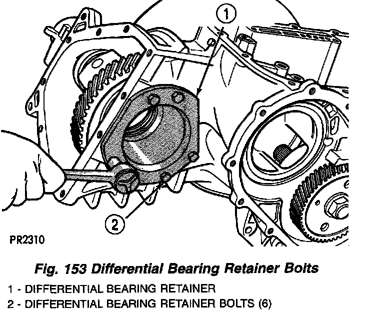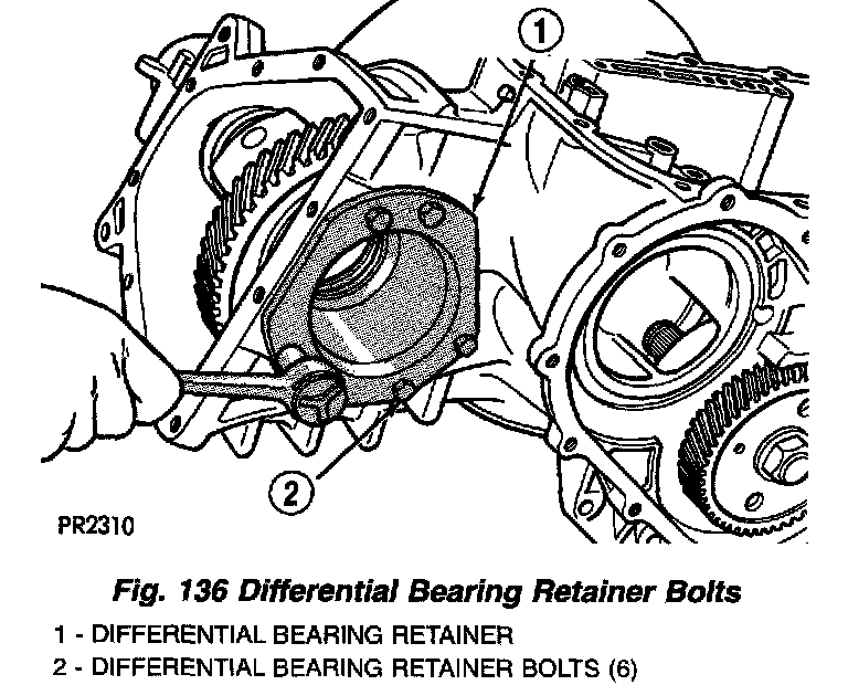 7. Remove differential bearing retainer-to-transaxle case bolts (Fig. 136).
