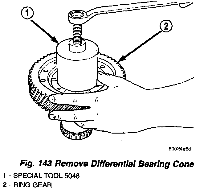 14. Remove differential bearing cone (Fig. 143).
