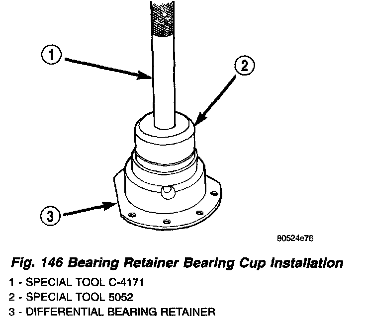 15. Remove bearing retainer bearing cup using Tool 6062A (Fig. 144) (Fig. 145). Remove shim and oil baffle.