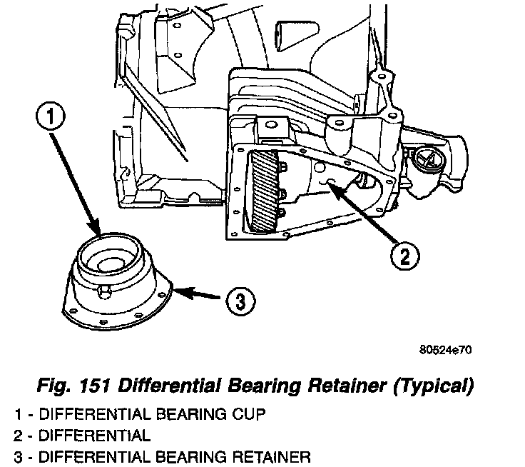 7. Apply a bead of Mopar(R) Silicone Rubber Adhesive Sealant to the differential bearing retainer (Fig. 151).