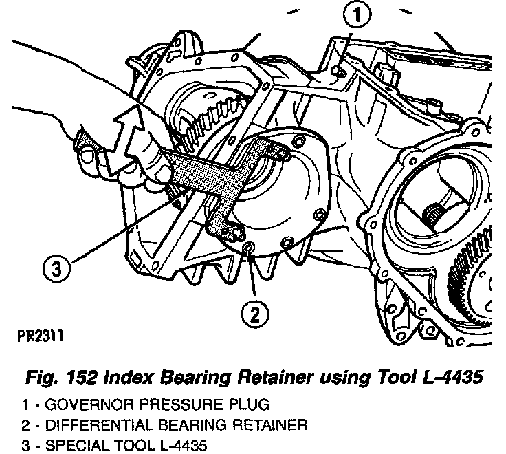 8. Install bearing retainer and index using Tool L-4435 until bolt holes align (Fig. 152).