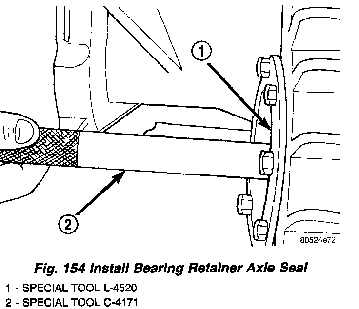 10. Install bearing retainer axle seal using Tool L-4520 (inverted), and driver handle C-4171 (Fig. 154).