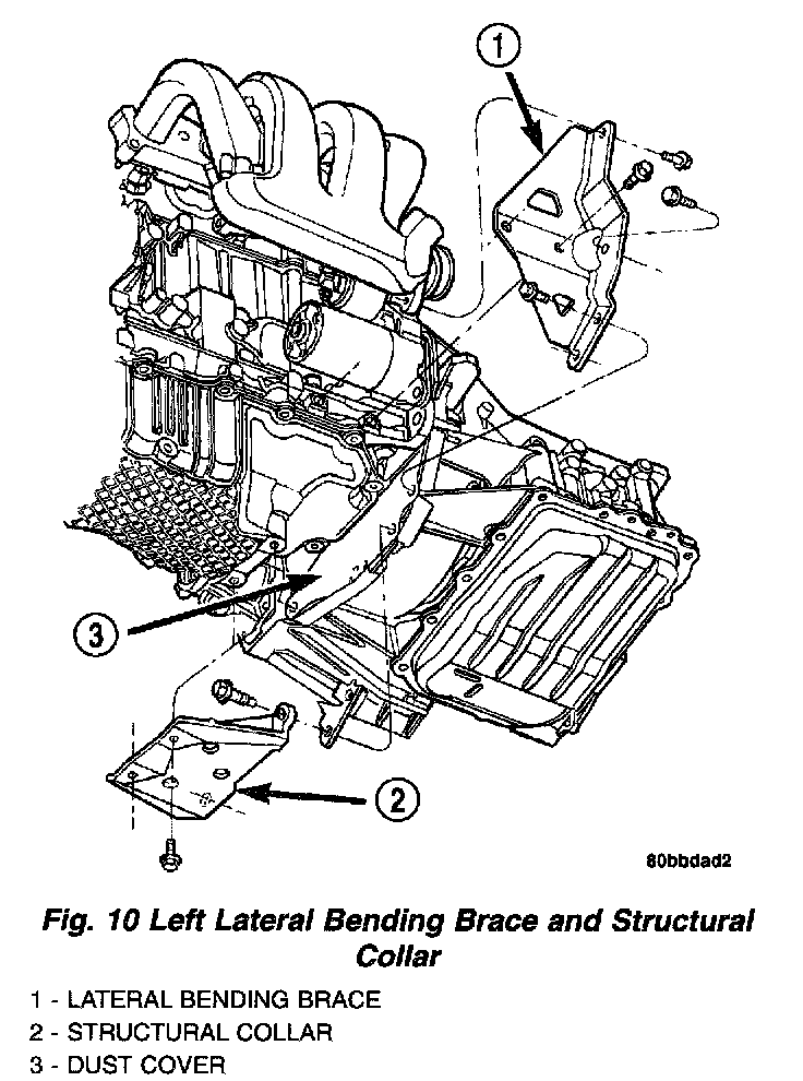 9. Install left engine-to-transaxle bending brace (Fig. 10).