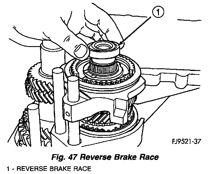 4. Install reverse brake race onto input shaft (Fig. 47).
