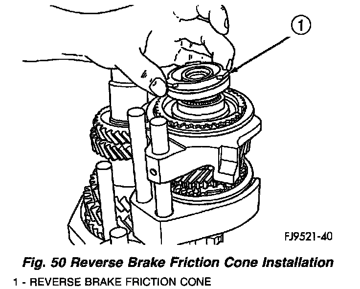 7. Install reverse brake friction cone (Fig. 50).