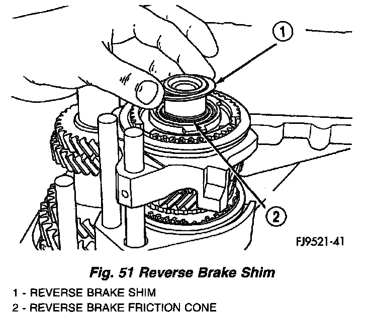 8. Install reverse brake shim (Fig. 51). Apply petroleum jelly to shim to hold in place.