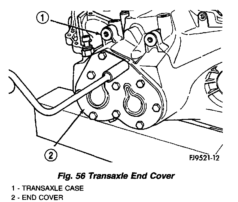 13. Apply Mopar(R) RTV sealant to end-cover outer edge and around bolt holes. Install end-cover onto gear case. Tighten end cover bolts to 29 Nm (21 ft. lbs.) torque (Fig. 56).