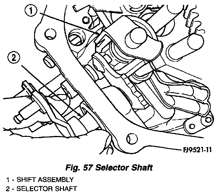 16. Turn selector shaft into slot on blocker assembly (Fig. 57).