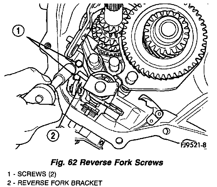 21. Install reverse fork bracket and reverse lockout. Tighten screws to 11 Nm (96 inch lbs.) torque (Fig. 61) (Fig. 62).