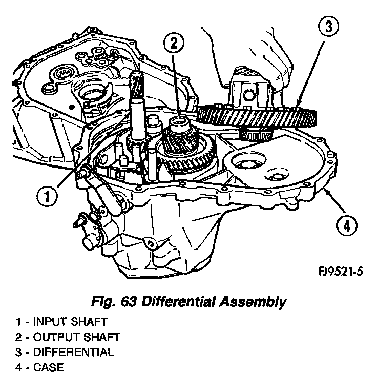 22. Install differential into gear case (Fig. 63).