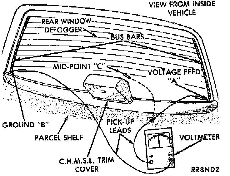 b. All rear window grid lines would have to be broken or one of the feed wires are not connected for the system to be inoperative.
