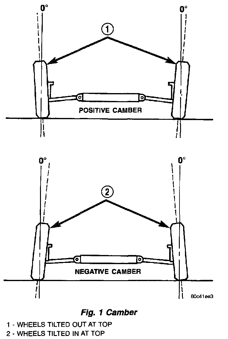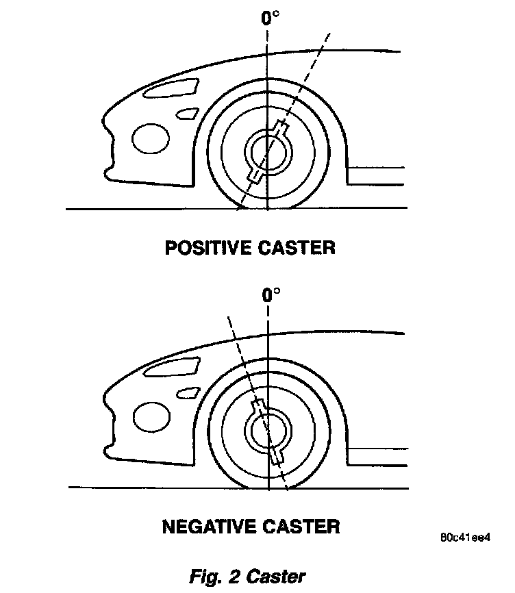 - Rearward tilt (upper ball joint trailing lower) results in a positive caster angle.