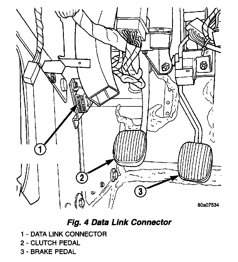 The data link connector (diagnostic connector) links the DRB scan tool with the PCM. Refer to On- Board Diagnostics in Emission.