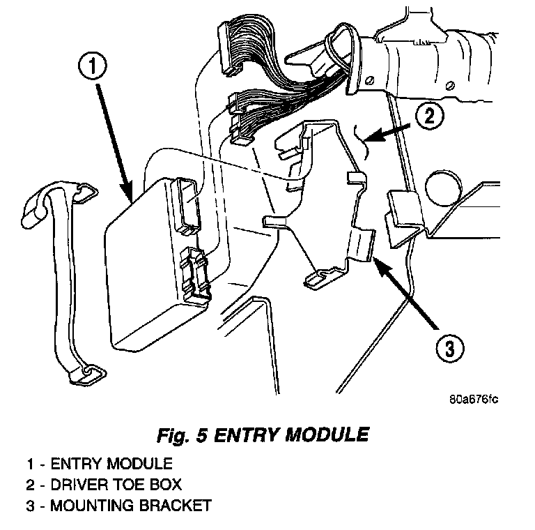 The entry module is located on the driver's side of the center floor tunnel underneath the instrument panel.