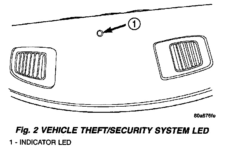 4. Receiver acknowledges programming mode by the flashing Vehicle Theft Security System LED located on the top, center of the instrument panel.