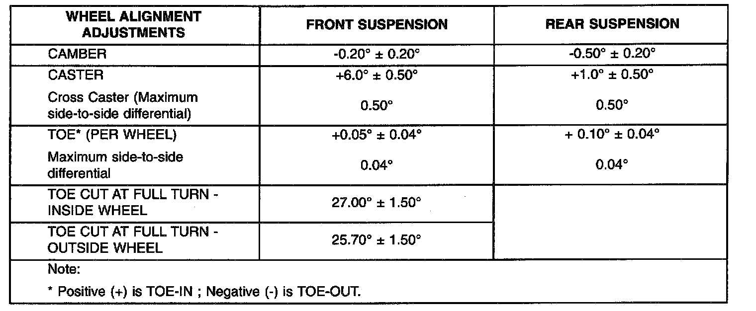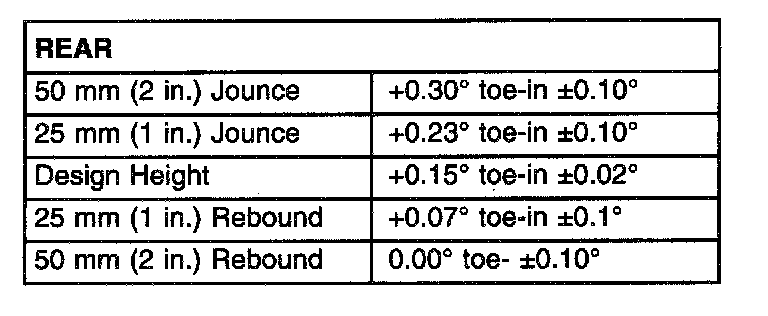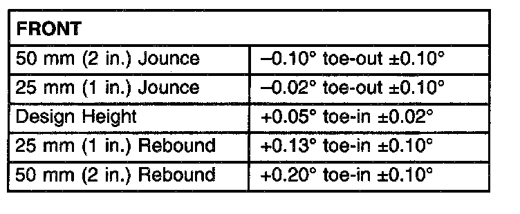 NOTE: All wheel alignments are to be set with the vehicle at its proper curb height.