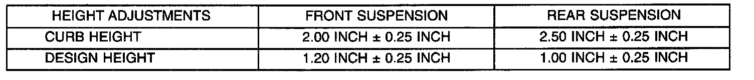 NOTE: Curb height and design height specifications are the same on all models, including standard and ACR suspensions.