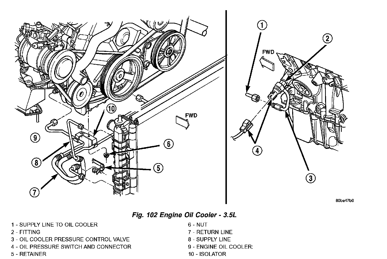 ENGINE OIL COOLER1. Install radiator assembly. Tighten lines to radiator fittings to 18 Nm (160 in. lbs.) (Fig. 102).