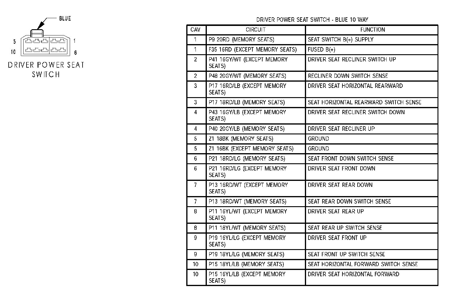 Driver Power Seat Switch: