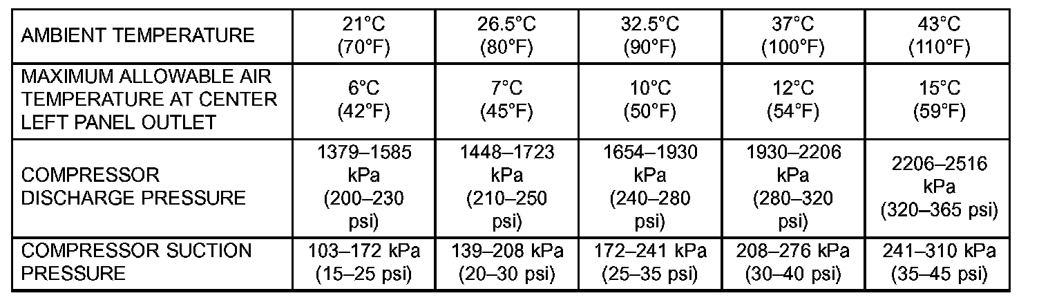 A/C Performance Temperature And Pressure:
