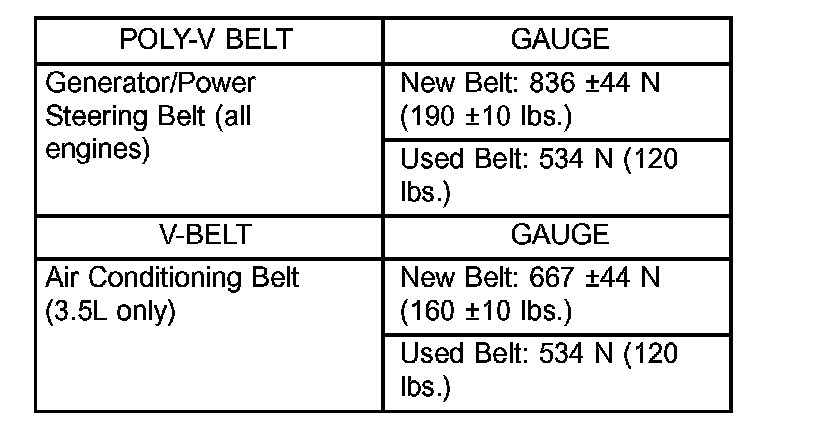 BELT TENSION CHART-2.7/3.5L ENGINES