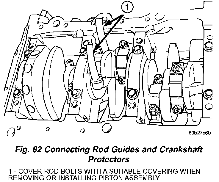 5. Install connecting rod bolt protectors on rod bolts (Fig. 82).