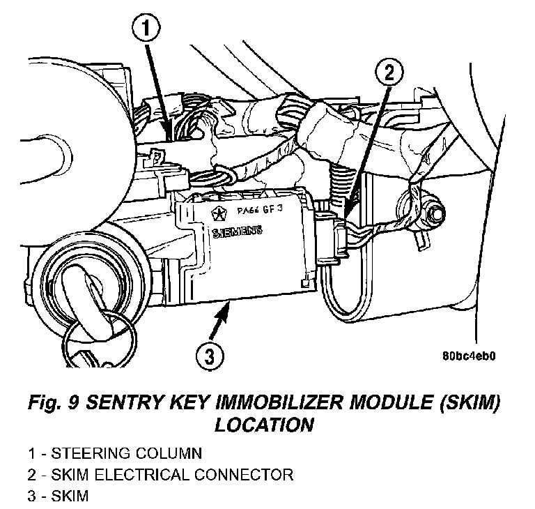 Fig.9 Sentry Key Immobilizer Module (SKIM) Location: