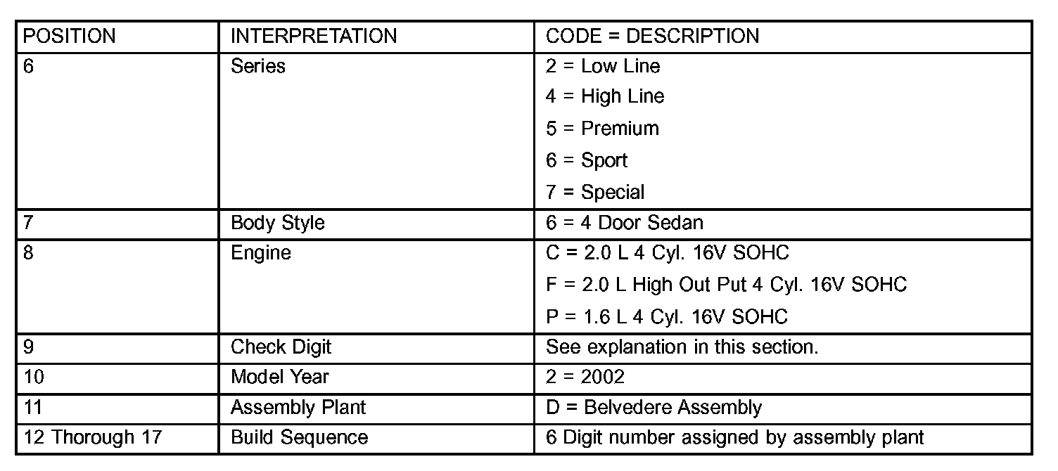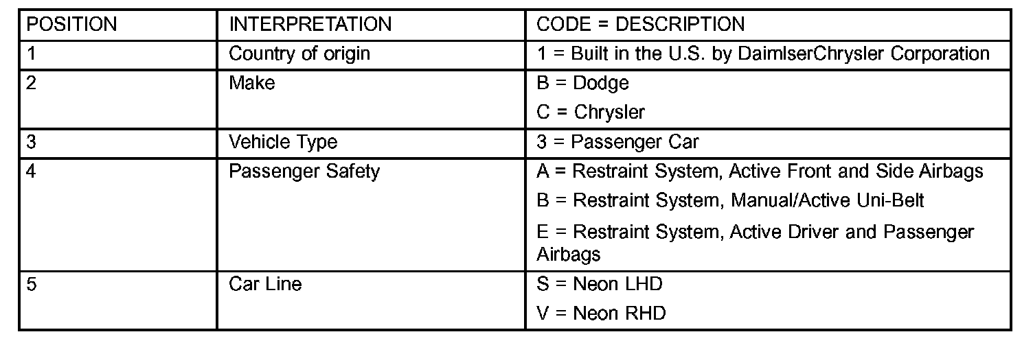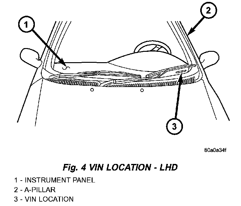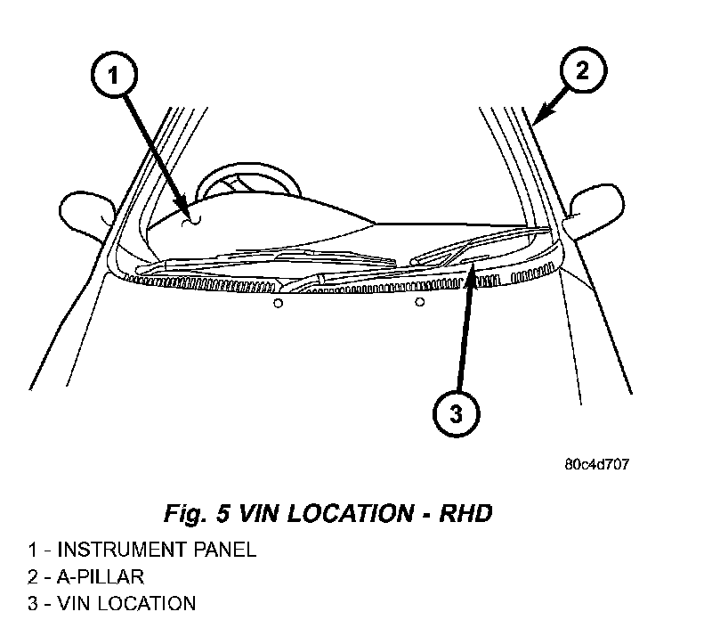 The Vehicle Identification Number (VIN) can be viewed through the windshield at the upper left corner of the instrument panel next to the A-pillar (Fig. 4) or (Fig. 5). The VIN consists of 17 characters in a combination of letters and numbers that provide specific information about the vehicle. Refer to the VIN Decoding Information Table to interpret VIN code.