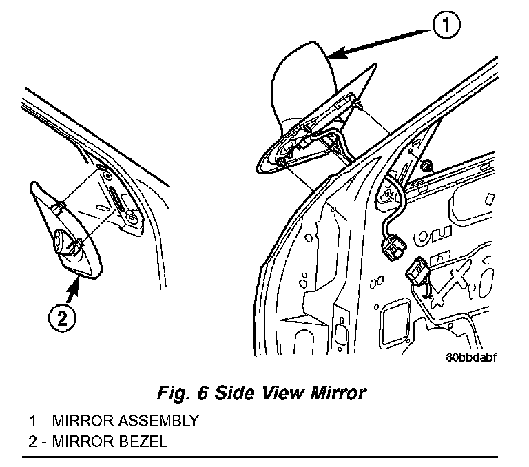 2. Remove nuts attaching mirror to door inner panel (Fig. 6).