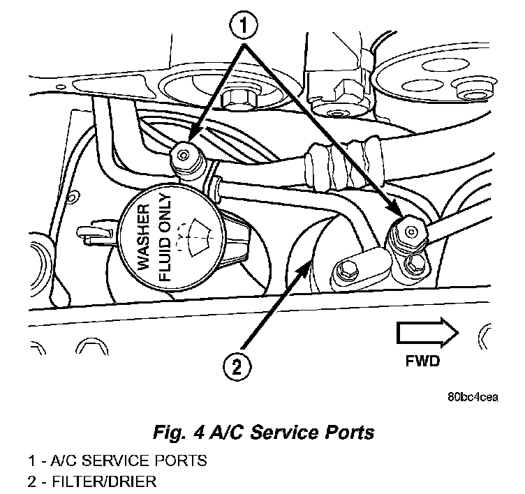 NOTE: The maximum amount of R-134a refrigerant that the air conditioning system holds is 851 grams (1.875 lbs.), 30 oz.