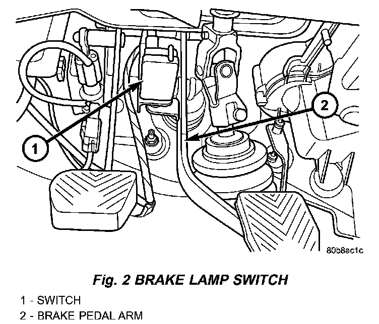 The brake lamp switch is located under the instrument panel, at the brake pedal arm.