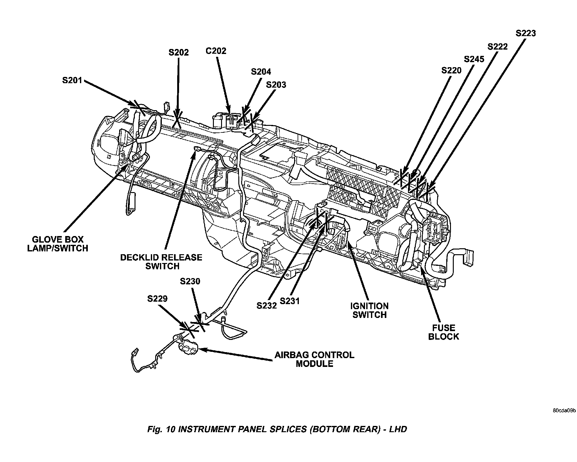 Fig.10 Instrument Panel Splices (Bottom Rear) - LHD: