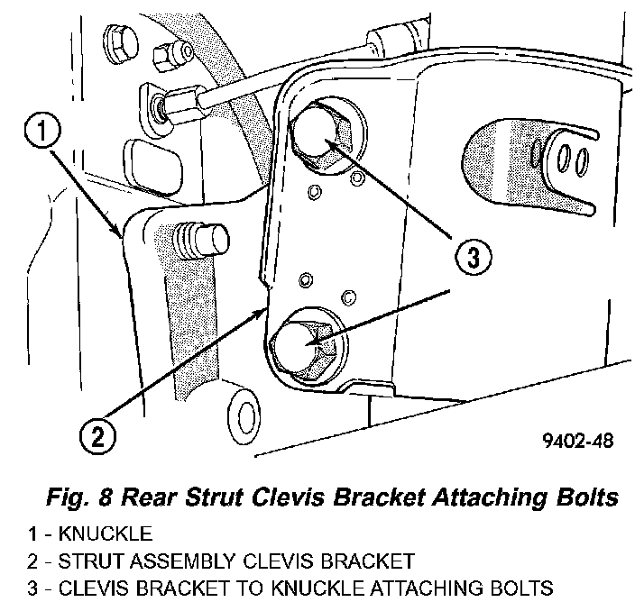 3. Remove the original upper bolt attaching the strut clevis bracket to the knuckle.
