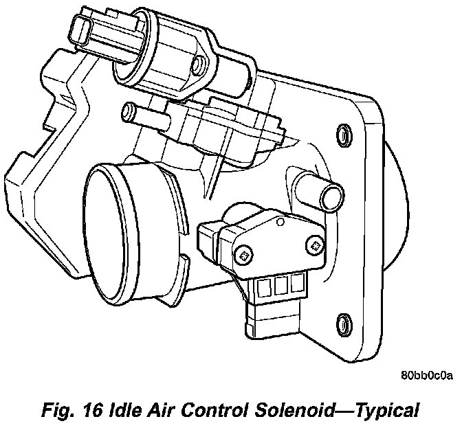 The throttle body has an air bypass passage that provides air for the engine during closed throttle idle. The idle air control solenoid pintle protrudes into the air bypass passage and regulates air flow through it.