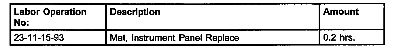 1. Remove the existing mat from the instrument panel and discard. The use of a fiber (trim) stick may be necessary to assist in the removal of the mat.