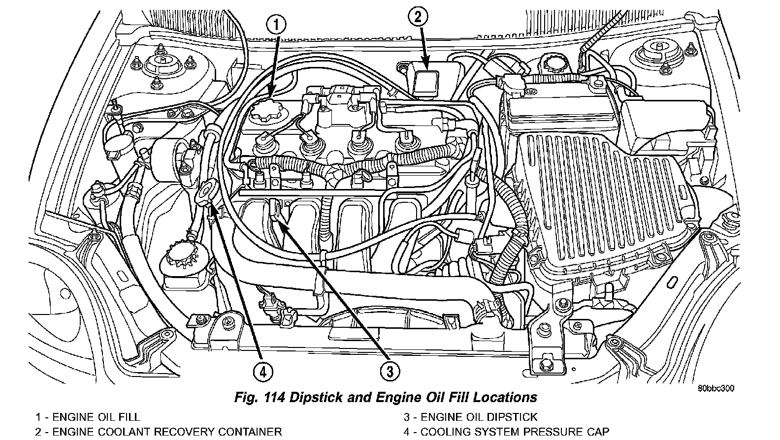 2. Remove oil fill cap (Fig. 114).