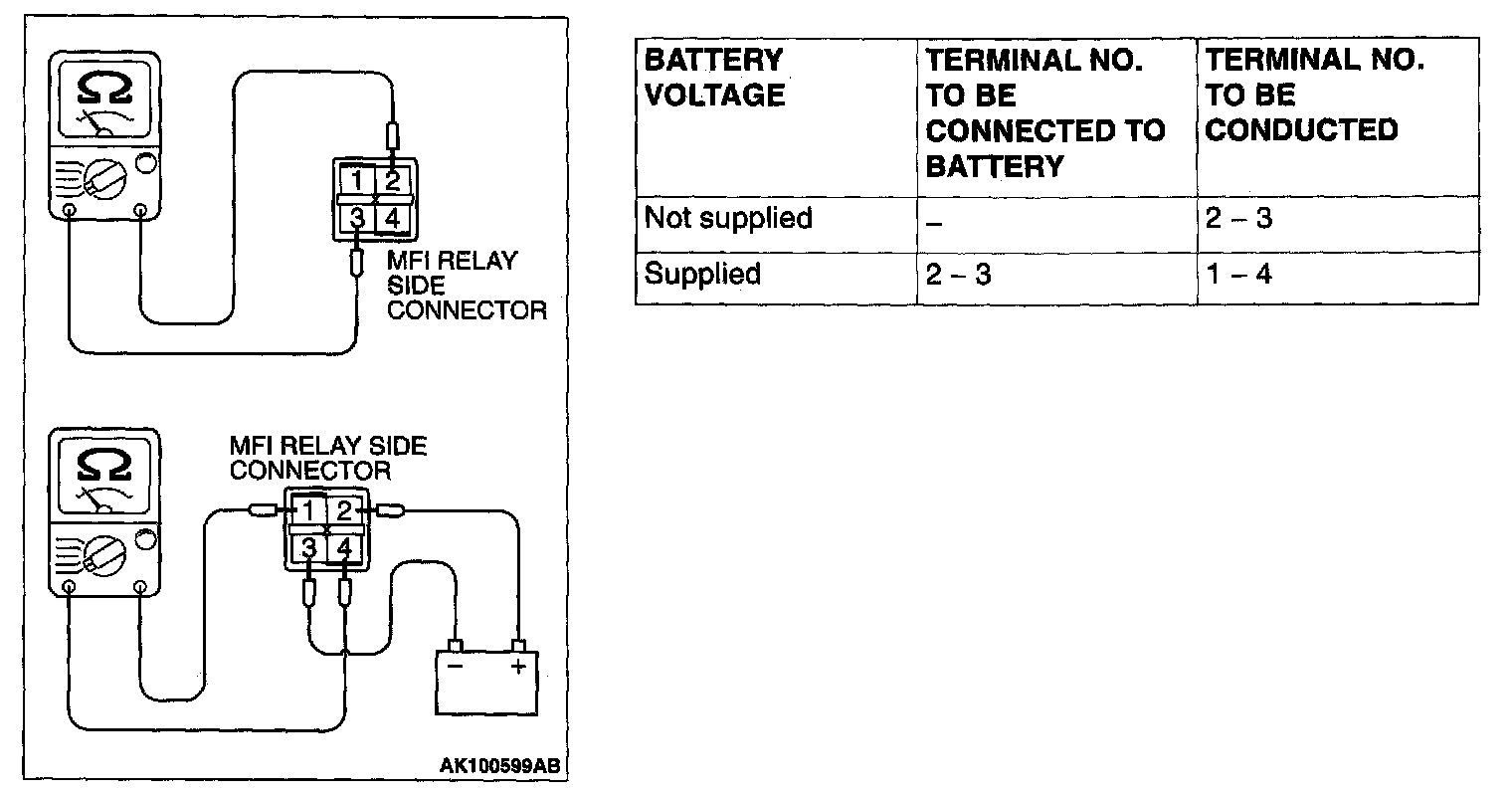 Multiport Fuel Injection (MFI) Relay Continuity Check: